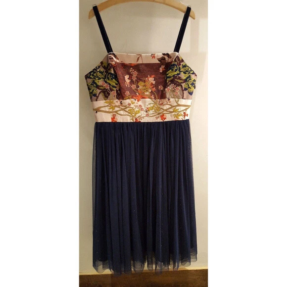 Anthropologie Moulinette Soeurs Tulle Skirted Floral Navy Blue Dress Brocade 14 Ebay
